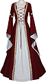 This lovely costume with wide hanging sleeves and double lacing - by Dornbluth of Germany - is a medieval design dating late Twelfth Century. It features a tight fit and double lacing down the front and back which allows for further adjustment of the width, and trumpet sleeves with a hem of 150 cm length.