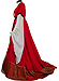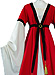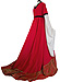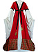 Six folds at the back of the dress lead into a wide train. The bright inserts at the front and the sleeves in white make it appear like 2 costumes. The 100 cm wide trumpet sleeves are extra long, and have been laid in folds at the lower arm in order to provide flexibility of movement.