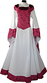 The hem is about 320cm wide, and ends in a 30cm long train. There is lacing in contrasting colours at the front and back; this makes it easier to get dressed, and to choose between a loose or tight fit.